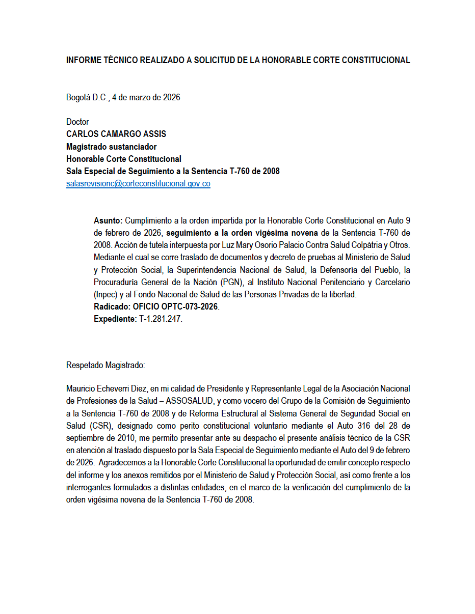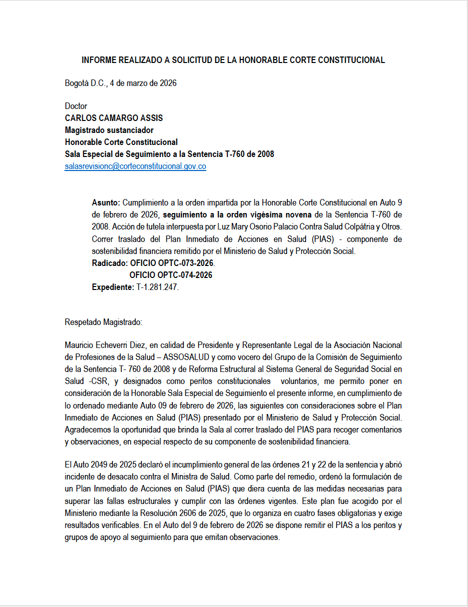 Adicionalmente, su alcance trasciende lo técnico, en la medida en que incorpora elementos de análisis institucional, regulatorio y de política pública, que pueden servir como referencia para la discusión jurídica y normativa del sistema de salud, incluyendo aspectos relacionados con el derecho fundamental a la salud, la sostenibilidad financiera, la gobernanza del sistema y la responsabilidad de los diferentes actores.