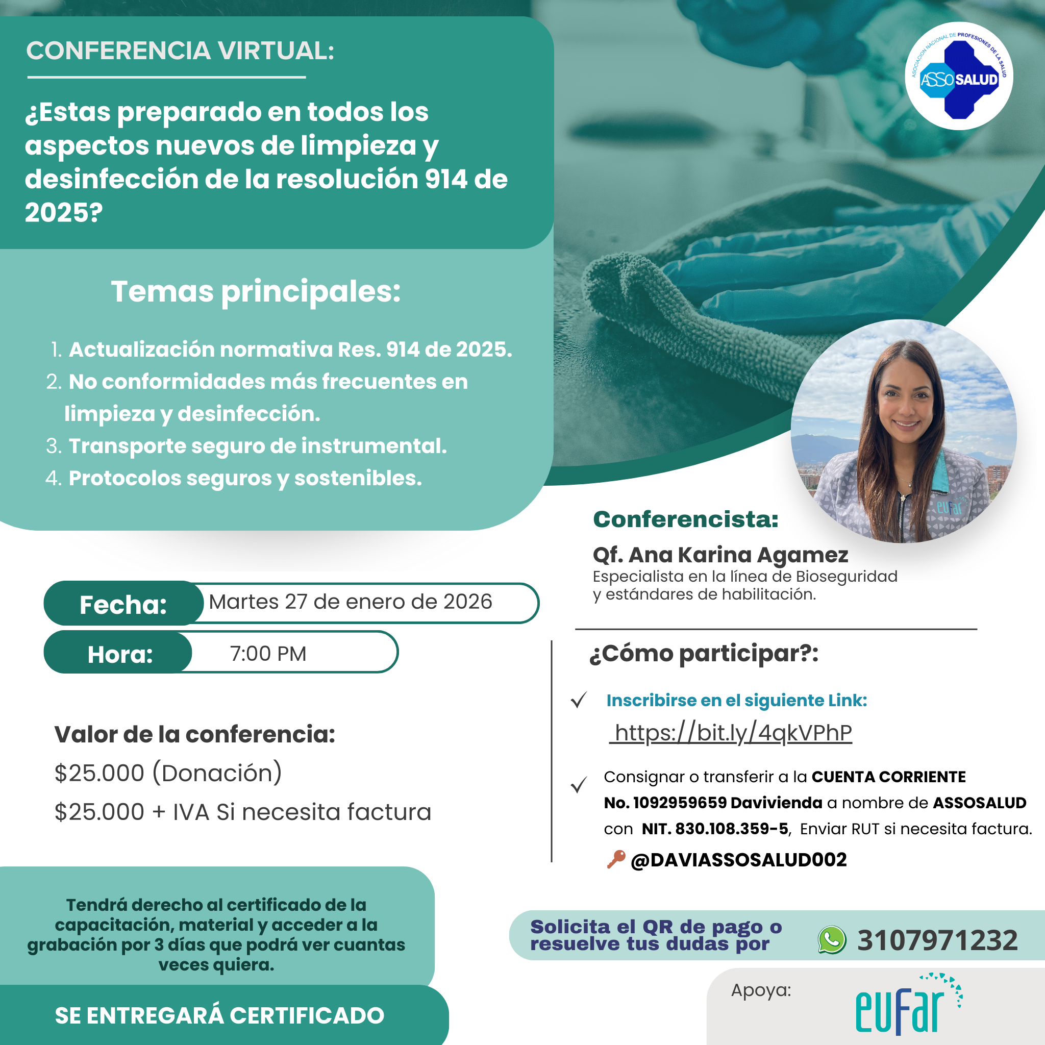 Conferencia Virtual: ¿Estás preparado en todos los aspectos nuevos de limpieza y desinfección de la Resolución 914 de 2025? Actualízate y fortalece el cumplimiento normativo,