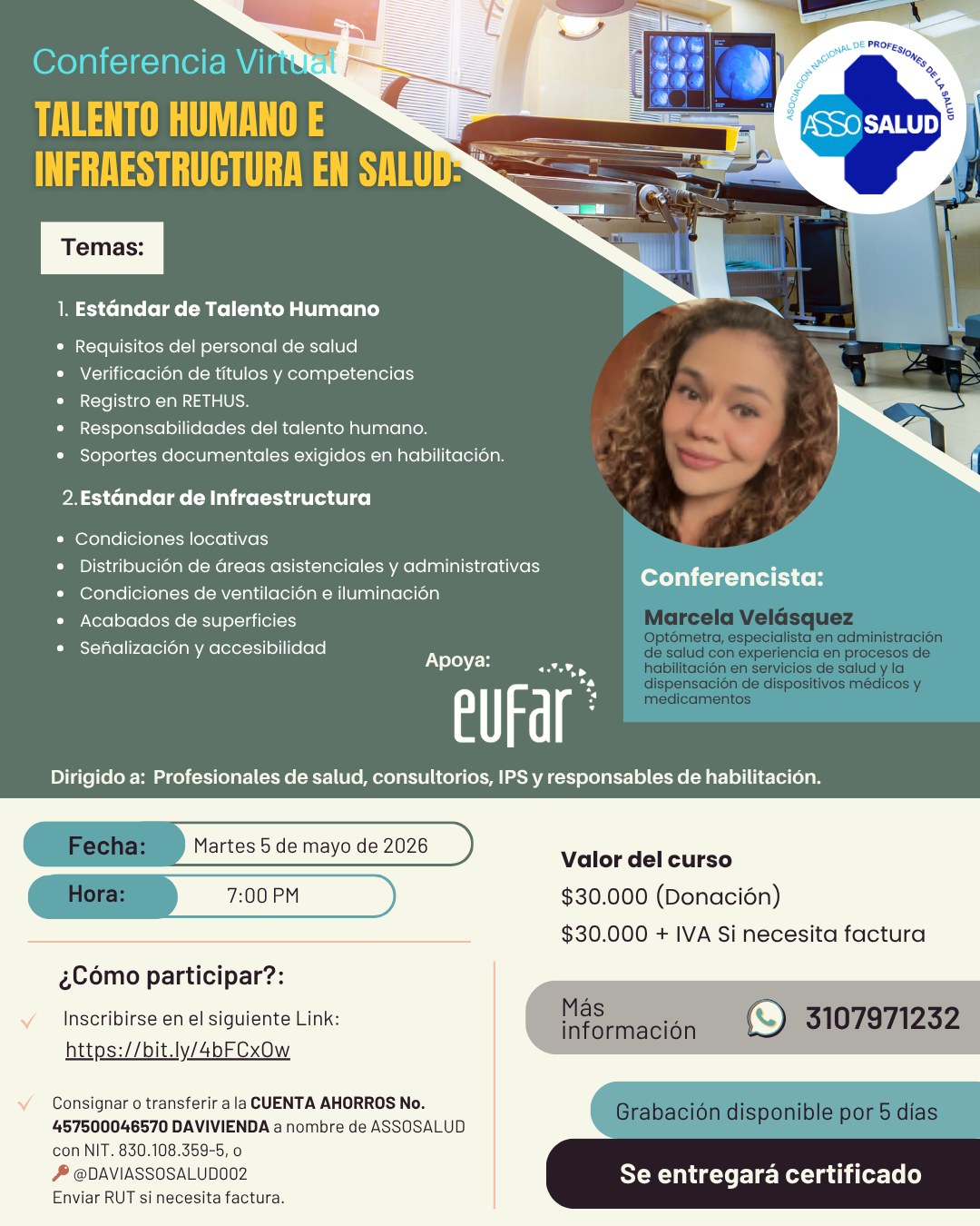 📢 Conferencia Virtual: Talento Humano e Infraestructura en Salud: ✨ Claves para cumplir los estándares de habilitación sin errores 🎯 Objetivo: Fortalecer el cumplimiento de